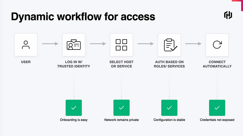 One such trick Boundary endeavors to solve is authentication. Once Boundary is built out in future version to understand higher-level protocols (at launch it only support TCP), it’ll be able to inject authentication into the connections on a dynamic basis.