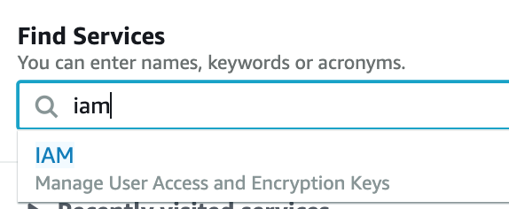 First, jump into AWS and type IAM into the main page console, then click on the IAM dropdown.