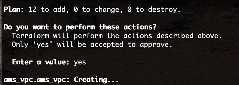 and give Terraform a minute to parse our config and return a plan. Answer yes