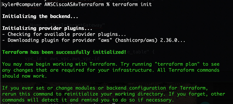 First, let’s initialize the terraform to validate it’s functional and valid terraform config with the command terraform init