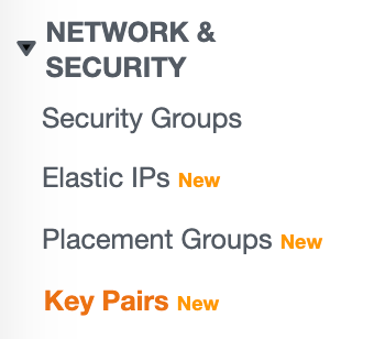 In the left column, click on “Key Pairs” under the “Network & Security” drop-down.
