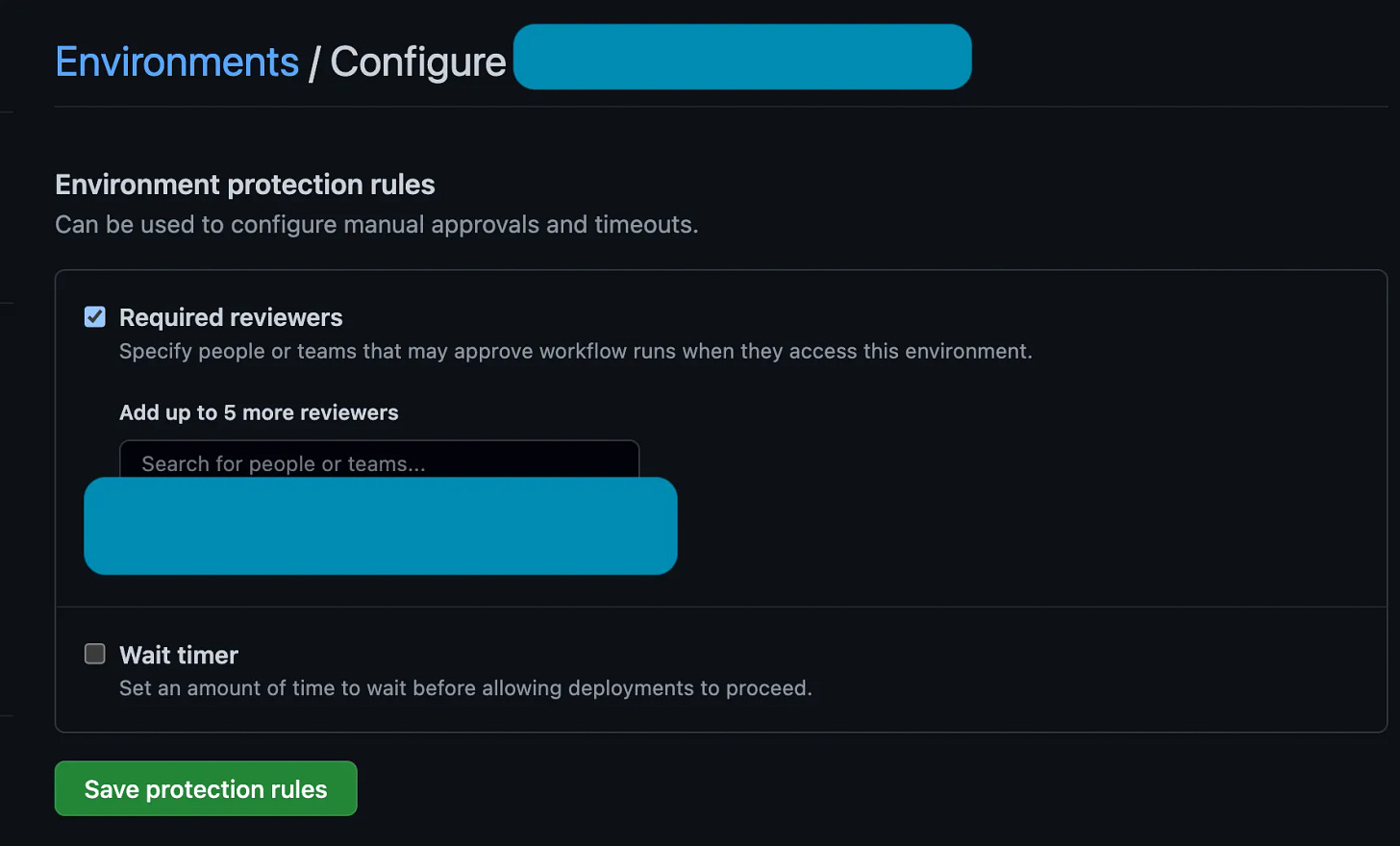 Here, instead, we set a trigger of workflow_dispatch, which means this action will be triggerable from the github web page console. We set an input called “environment” and add custom fields for description, set it required (line 10), and set some options (line 11). I made up the options on line 11 — put whatever you’d like! This will appear as a required drop-down when launching this pipeline from the web console.