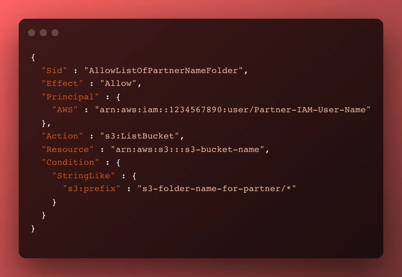 Unless you have experience with S3, you won’t be able to write this from scratch, and unless you’re very careful you’ll miss a partner ARN and folder path pairing when you’re copying and pasting for a new client.