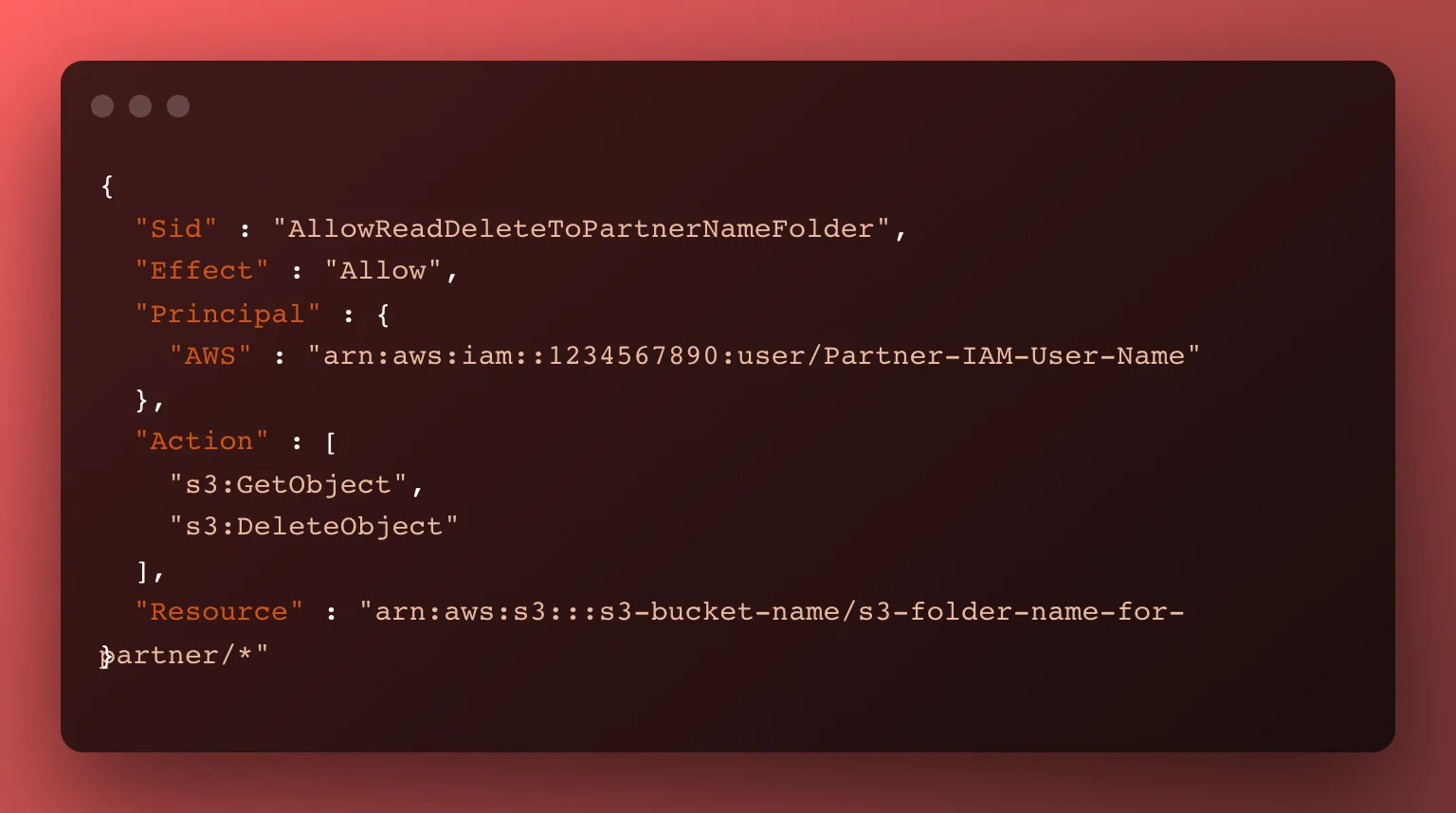s3:GetObject and s3:DeleteObject recursively on the partner’s folder path