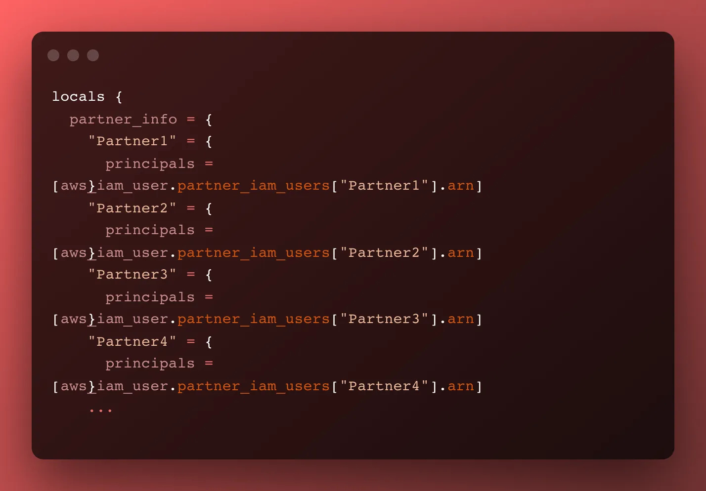 So now we have an amazing module that’s prepared to iterate over all our partners, each partner’s IAM User ARN, and potentially the updated folder path.